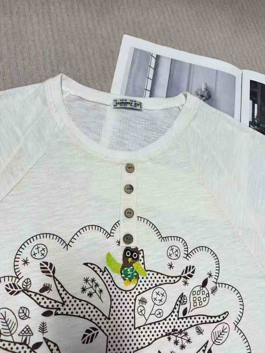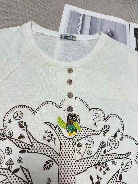 日韩单森系棉麻刺绣印花T恤,¥4.8清