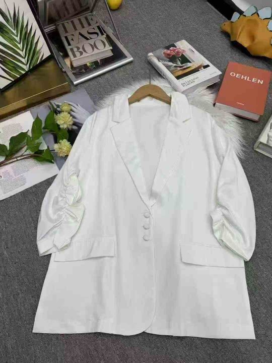 简约气质通勤OL~三粒扣抽褶收腰上衣显瘦七分袖西装外套女秋,107件,码数1-3,独立包装,货品干净,白色为主。(货号:5016#16)