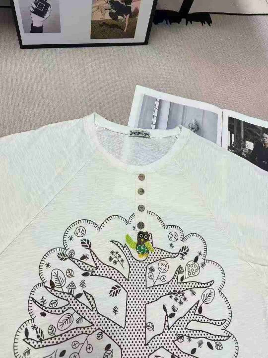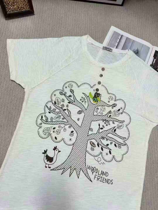 日韩单森系棉麻刺绣印花T恤,¥4.8清
