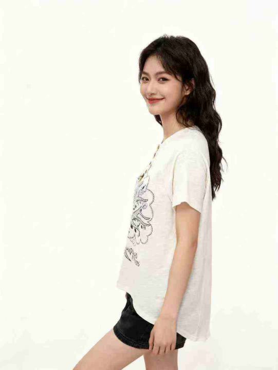 日韩单森系棉麻刺绣印花T恤,¥4.8清226件,均码,独...