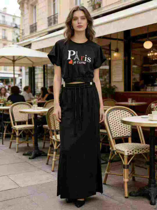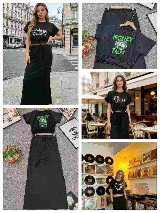 码数S一2XL,数量150套左右,辣妹T恤➕长半身裙套装,统一放莫代尔面料(牛奶丝)高弹力,单款多图案