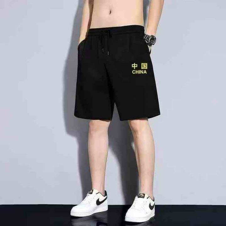 新款中国标印花男士休闲运动健身短裤潮流流行休闲五分裤,独立包装,均码,187件,全清5.5