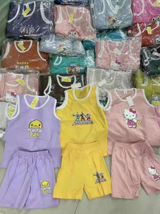 ☕️童装背心短裤套装3180套全清秒杀6.8元,分货100套起7.8元儿童纯棉背心套装 中小童2-8岁三个码数M L XL码,花型颜色多多 纯棉好质量~6件一包装