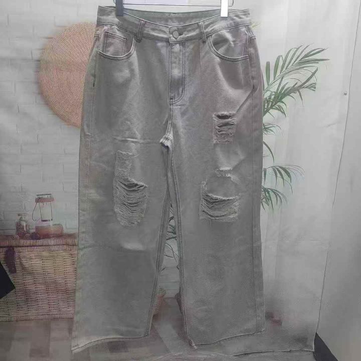 10.5元全清,破洞牛仔裤男2025新款高级感百搭燕麦色直筒裤美式高街宽松阔腿裤,单款单色,S-XL码,68件左右,独立包装