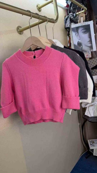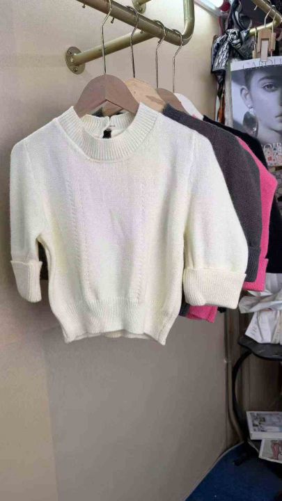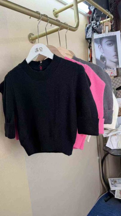 韩版高级感泡泡袖针织衫女士打底百搭短款上衣,整款4色,数量40件,均码,福利价8.8秒杀(012#602)