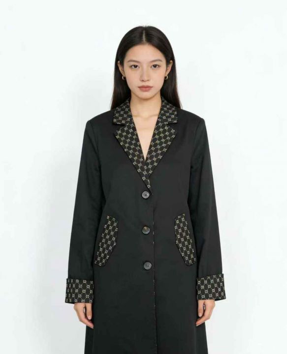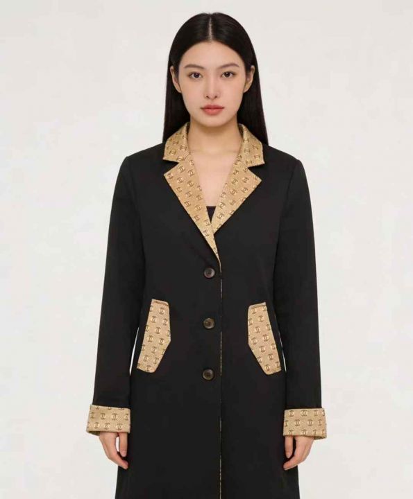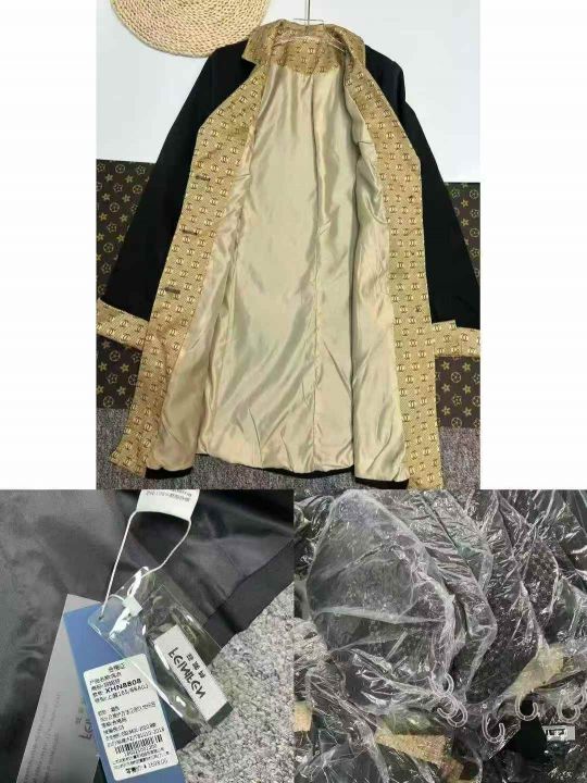 品牌女装风衣系列款,数量1275件,码数SML,杭州实体店货,黑色同一种款式3个花型,有内衬里布,全部防尘袋配衣架独立包装,吊牌价1680元,分货➕1随机配
