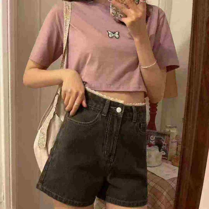 328件复古ins夏季正肩短袖t恤女修身显瘦辣妹短款法式别致开叉V领上衣,面料...