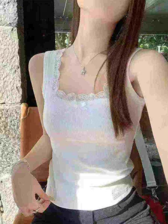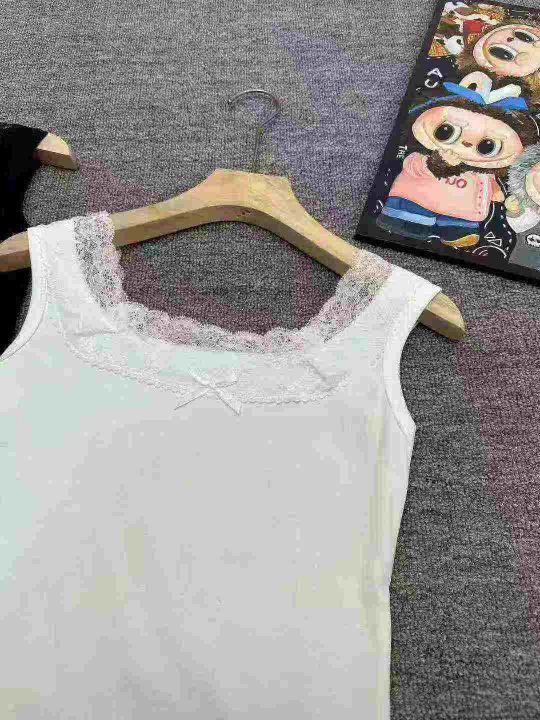 天猫在售款2130件夏款高品质螺纹纯棉纯欲风蕾丝蝴蝶结背心,高弹力可内搭外穿,单款两色,M-XL,货品干净,独立包装