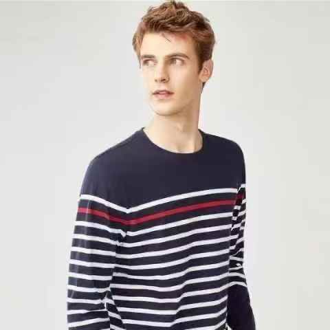 男女主气质条纹长袖男女T恤秋季,独立包装,S- X L,7...