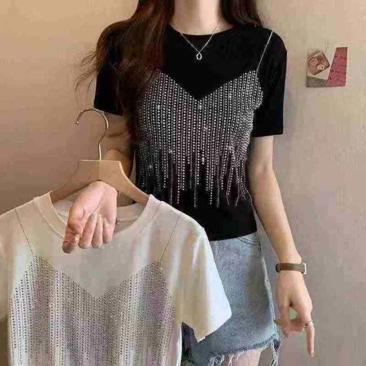 Bling Bling辣妹T恤☕️6000件全清12.8元,100件起分货13.8元,重工烫钻超...