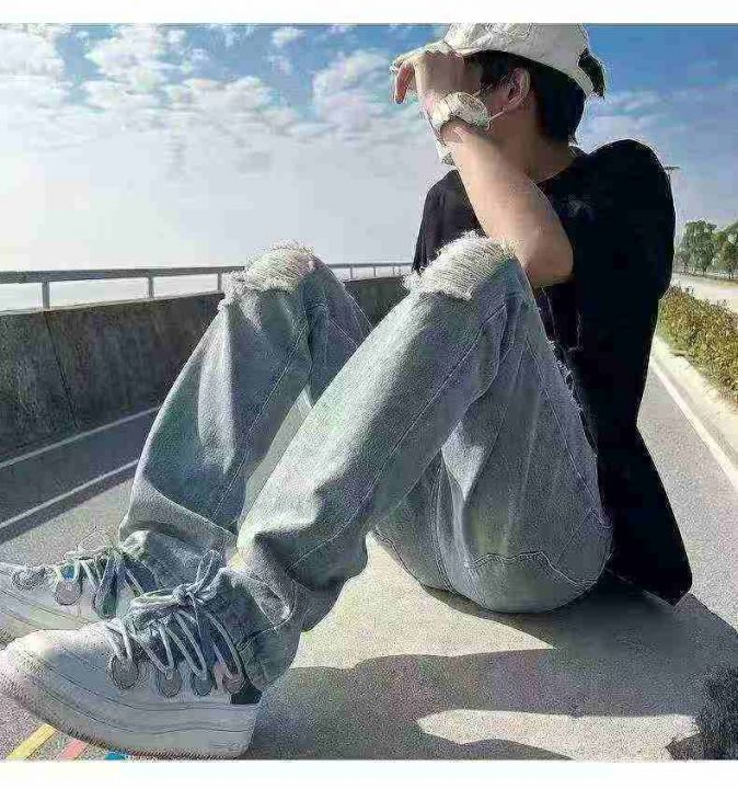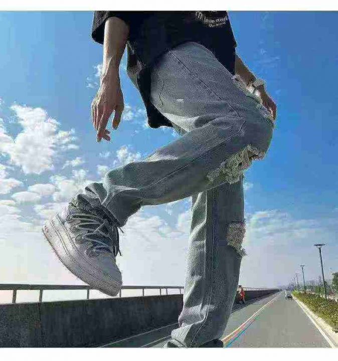 春夏季新款男士洗水棉网红破洞潮牌个性牛仔裤,独立包...