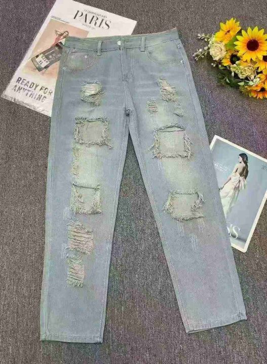 春夏季新款微胖MM破洞设计款牛仔老爹哈伦裤,独立包装带吊牌,码数L-3XL码...