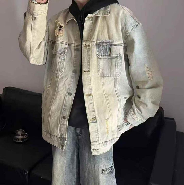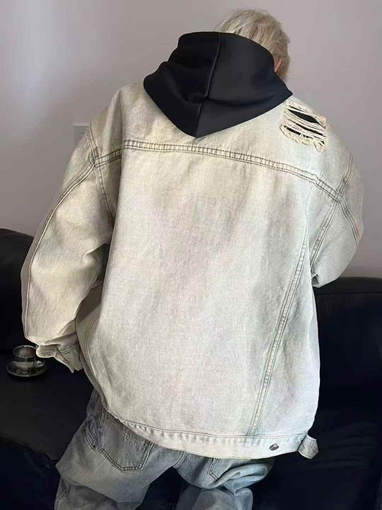 秋季新品洗水棉网红复古做旧男女同款牛仔外套,独立包...