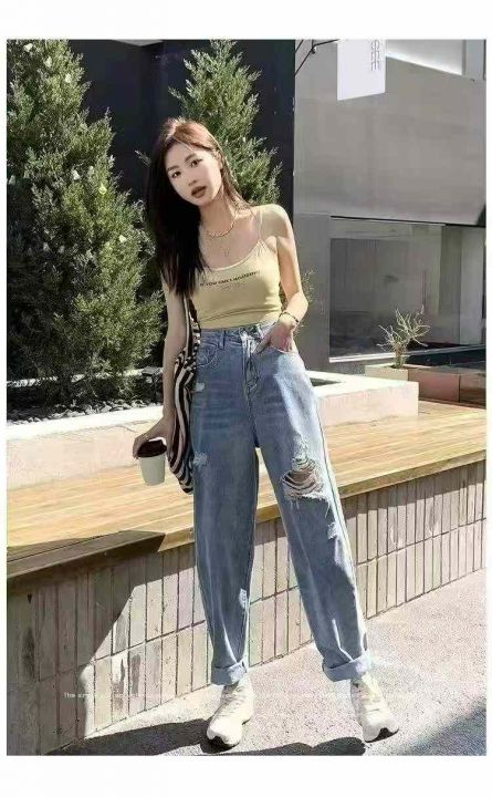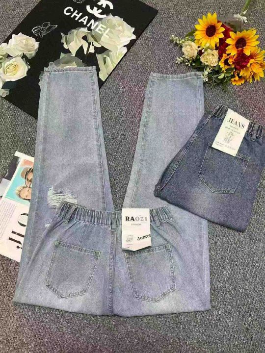 春夏季新款微胖MM破洞设计款牛仔老爹哈伦裤,独立包装...