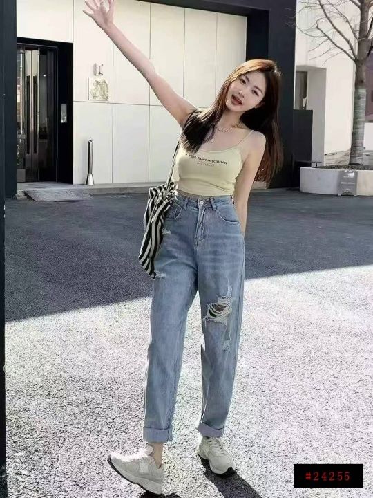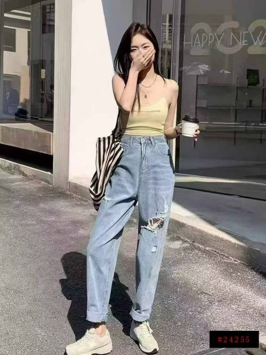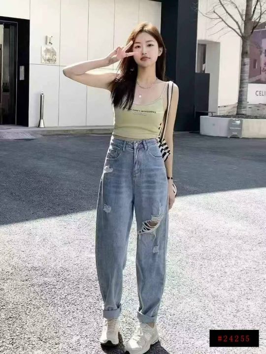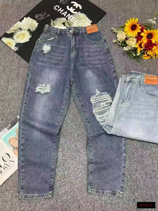 春夏季新款微胖MM破洞设计款牛仔老爹哈伦裤,独立包装...