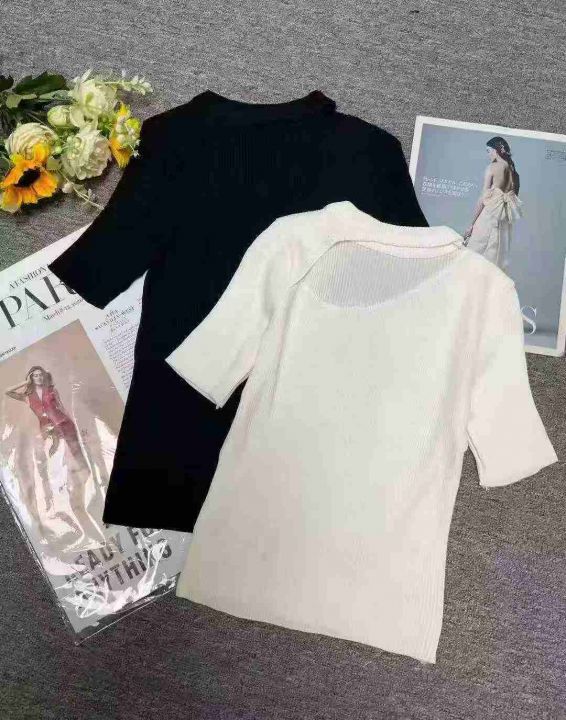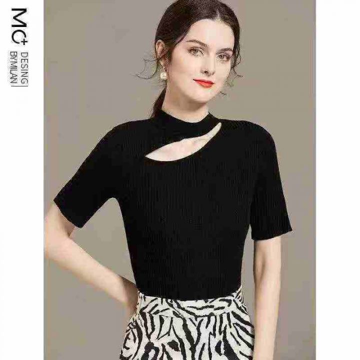 夏季新款时尚心机挂肩挖空露锁骨短袖针织小衫,独立包...