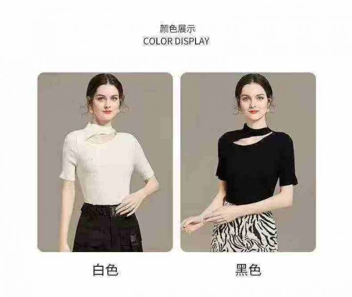夏季新款时尚心机挂肩挖空露锁骨短袖针织小衫,独立包...