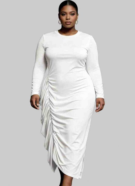 欧美不规则褶皱长袖/单肩长袖/单肩短袖连衣裙,图片款多色,数量:242件,码数:S-4XL,品质好,拉链式独立包装。