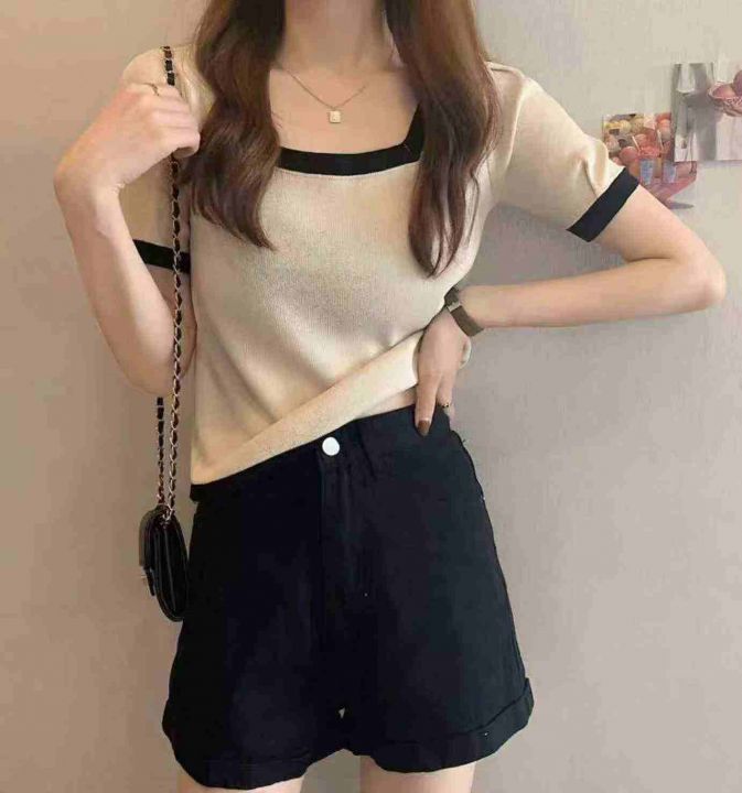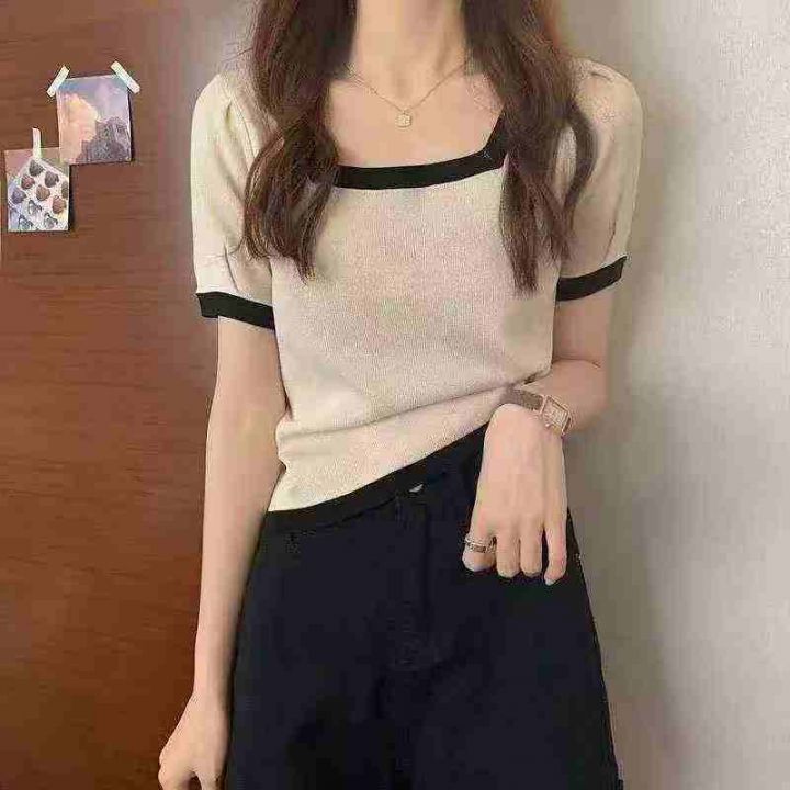 夏季新款大码宽松弹力显瘦方领冰丝针织短袖,独立包装,均码面料柔软舒适弹力,宽松版,单款4色米色黑色多,4800件左右,全清5.9元超低价秒杀!分货加一!
