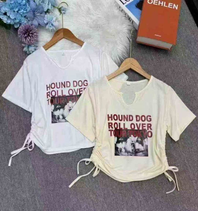 捡漏76件抽绳辣妹v领短款棉T恤,独立包装,码数2-4码,货号23#1