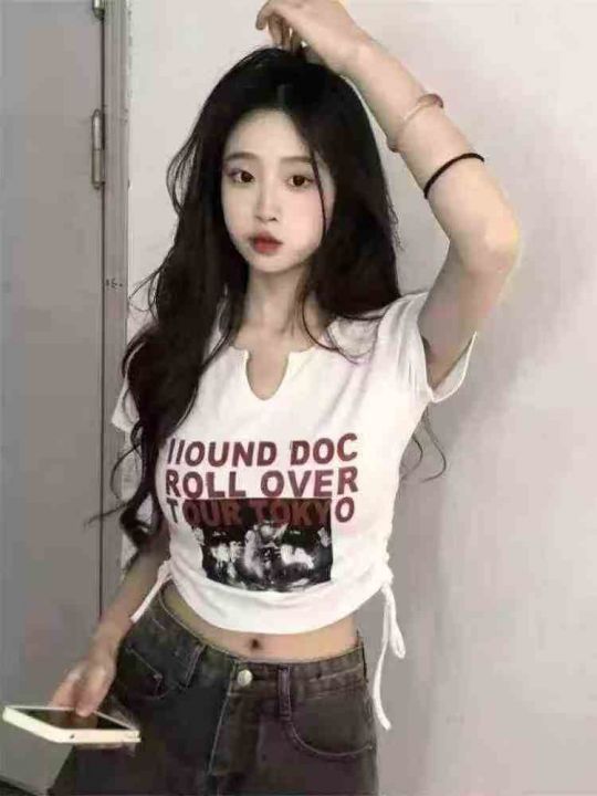全清价6.8捡漏76件抽绳辣妹v领短款棉T恤,独立包装,...