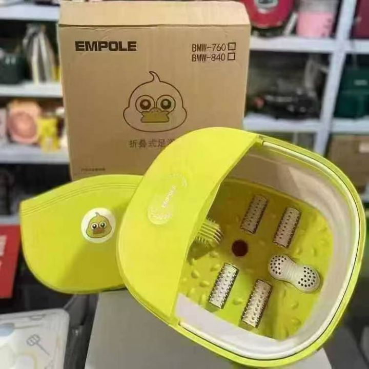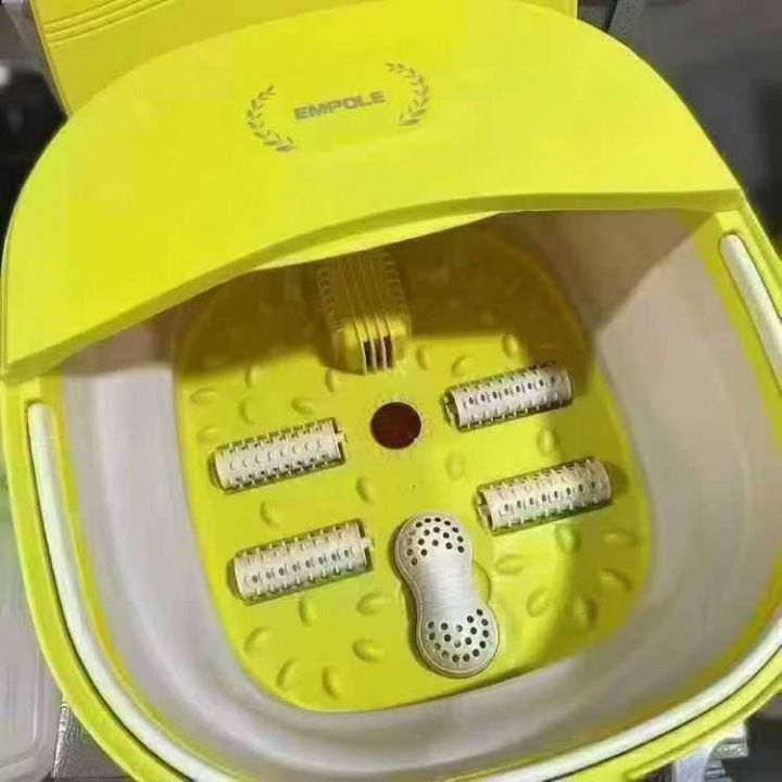 小黄鸭电动折叠足浴盆,独立包装。 折叠设计,恒温加热,自助按摩,收起只有11cm,一体成型,PP材质经久耐用,凸点滚轮指压,边泡脚边按摩