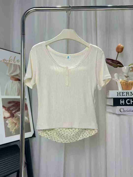 夏季新款蕾丝花边拼接假两件修身显瘦纯欲穿搭短款T恤上衣, 面料亲肤舒适高弹力 独立包装 码数1-4码 数量215件 全清4.5