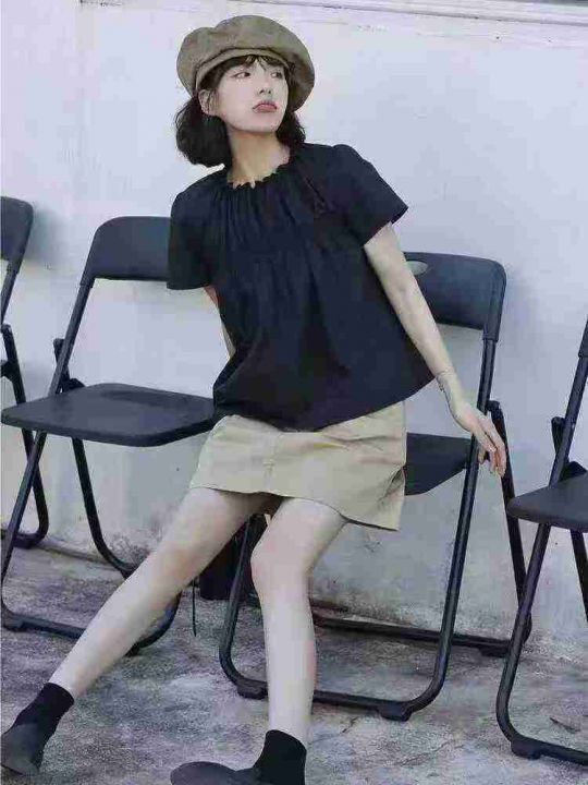 [月亮]:韩系气质松紧抽褶设计辣妹上衣