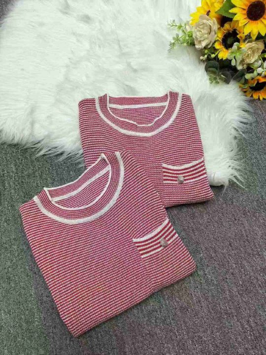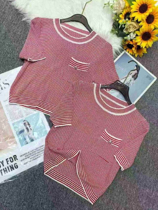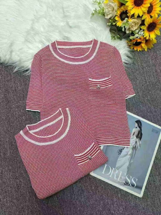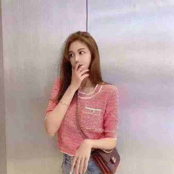 夏季新款韩系小香风针织短袖T桖,独立包装,均码面料...