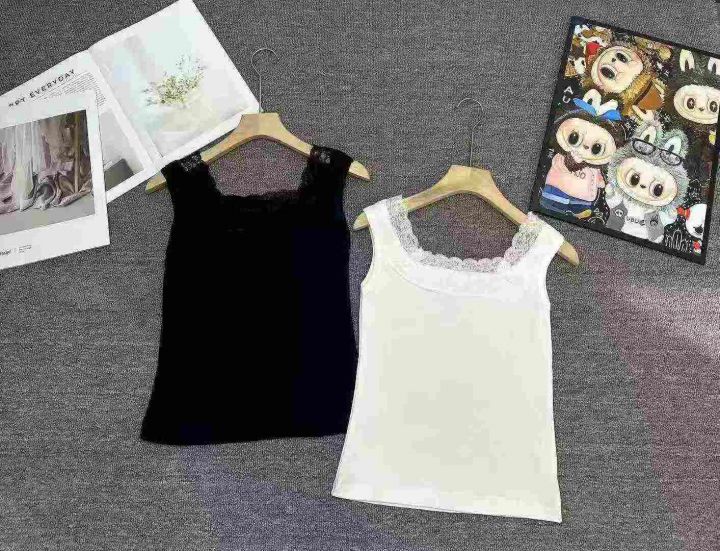 天猫在售款2130件夏款高品质螺纹纯棉纯欲风蕾丝蝴蝶结背心,高弹力可内搭外穿,单款两色,M-XL,货品干净,独立包装