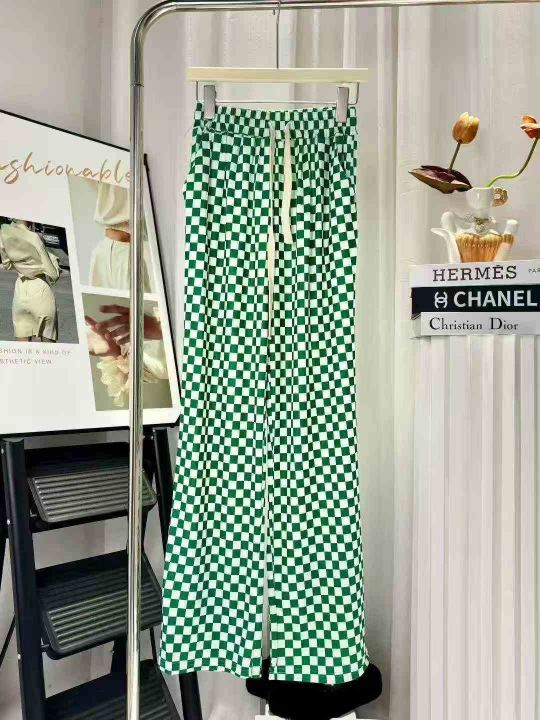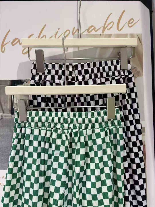 冰丝棋盘格裤子女夏季薄款高腰显瘦垂感休闲阔腿裤 有弹力 独立包装 码数1-5码 数量120件 全清6.8