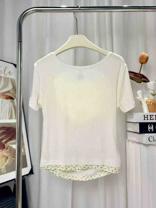 夏季新款蕾丝花边拼接假两件修身显瘦纯欲穿搭短款T恤上衣, 面料亲肤舒适高弹力 独立包装 码数1-4码 数量215件 全清4.5