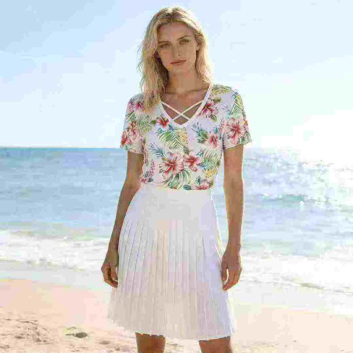 外贸原单V领交叉绑带印花短袖T恤约1500件,整单XS~XL码十几种底色不同花型...