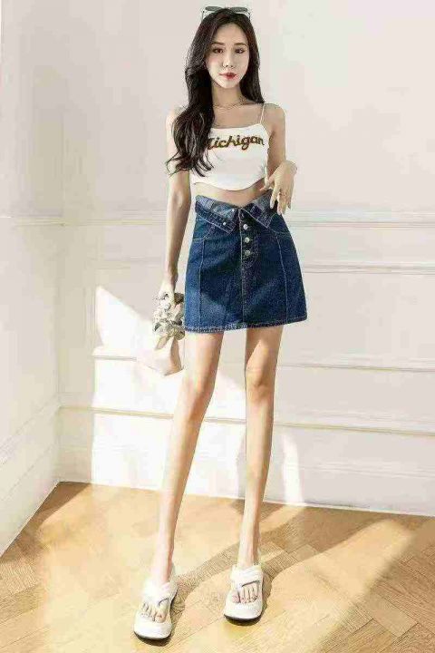 夏季新款洗水棉网红多扣牛仔半身裙,独立包装带吊牌,...
