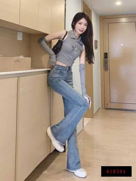 3️⃣高腰毛边微辣喇叭牛仔裤100条,码数S-L,独立包装带吊牌
