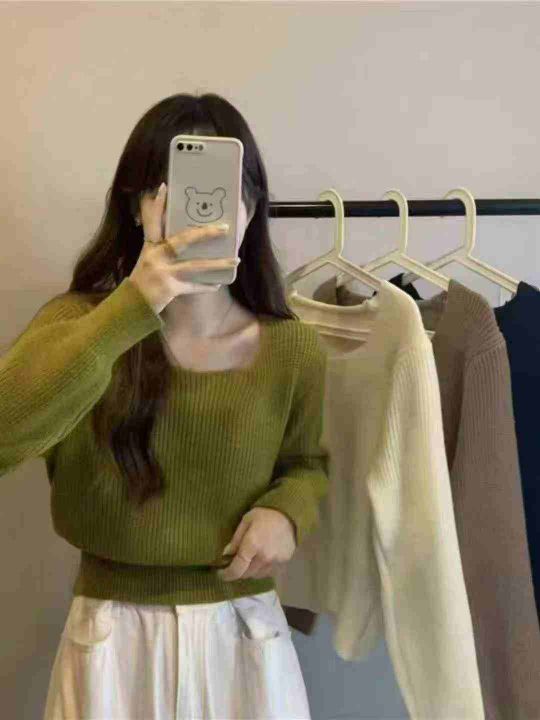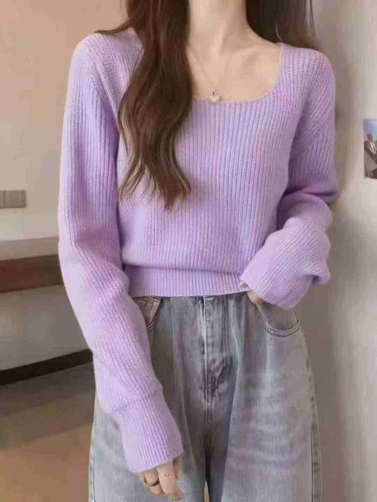 秋季新品方领高腰净版简约基础百搭套头毛衣, 独立包...