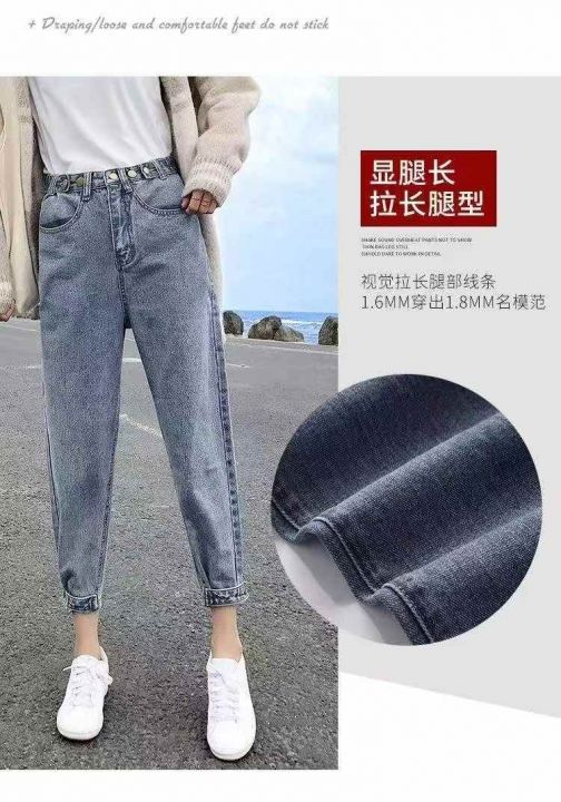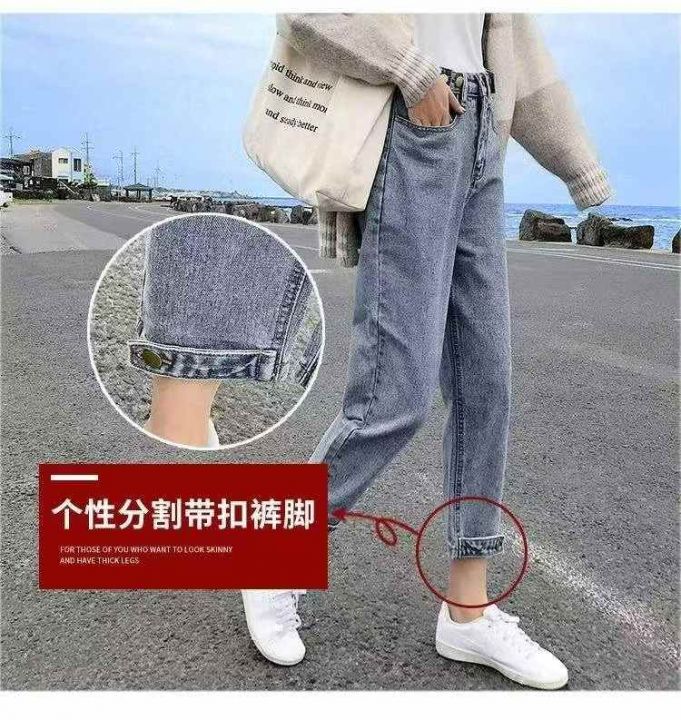 春秋新款宽松高腰显瘦萝卜牛仔老爹裤,独立包装带吊牌...