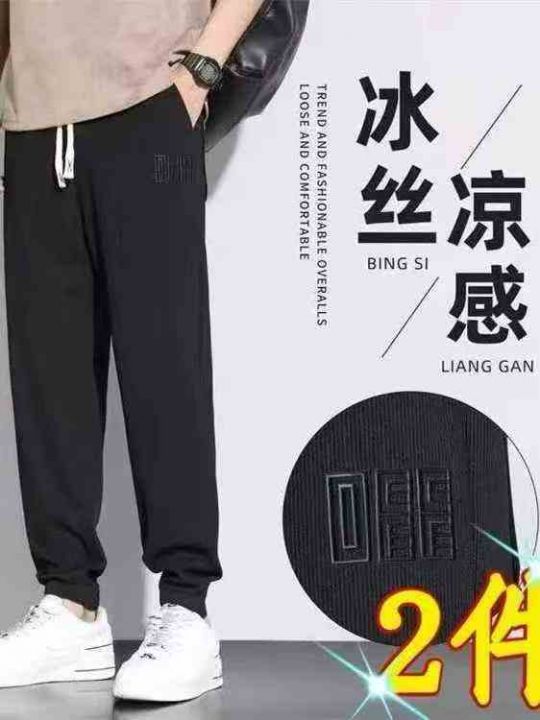 冰丝裤子男夏季薄款弹力透气休闲裤新款男士宽松百搭束脚运动裤,整款3色,独立包装,货品干净,M-5XL码,1850件左右,6.8清,分货加1