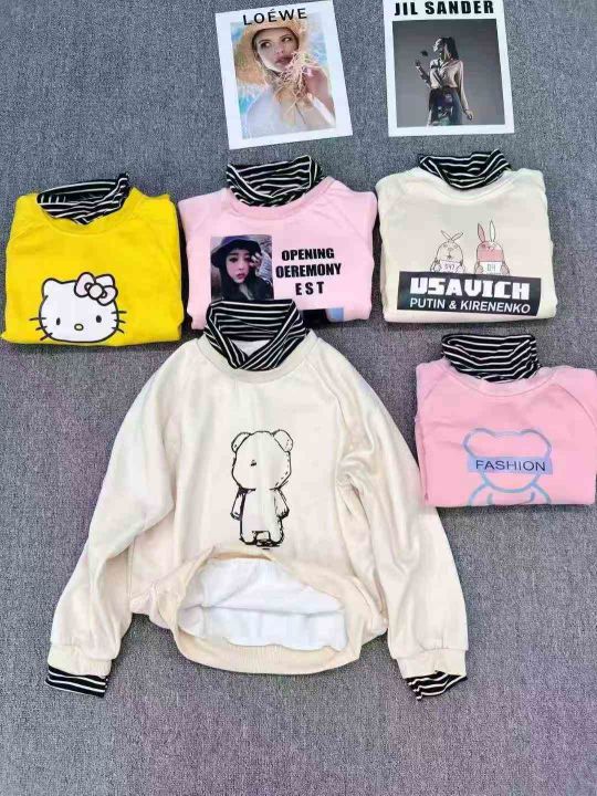 童装棉质卫衣,卡通动漫图案假俩件卫衣,内里加绒超柔的,5-12岁左右,五六个款式,总数350来件左右,独立包装