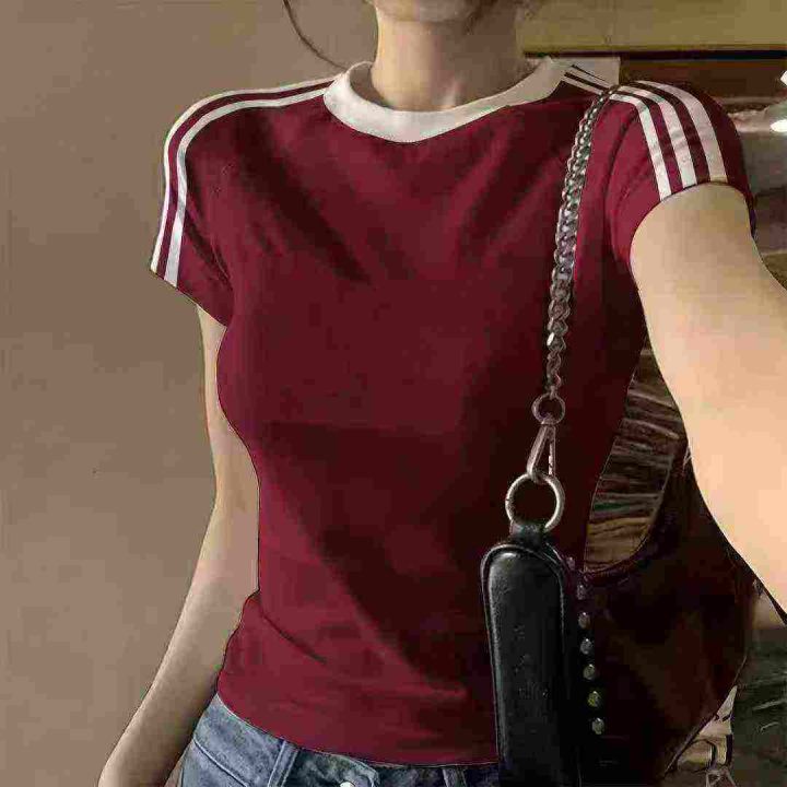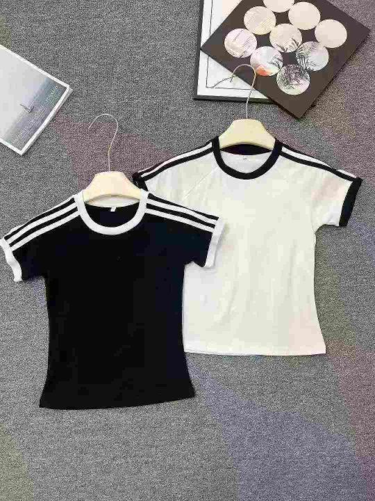 ☕️纯棉美式国潮设计感三条杠修身短袖t恤女夏季新款...