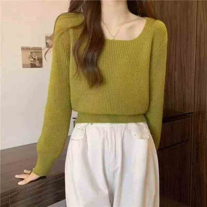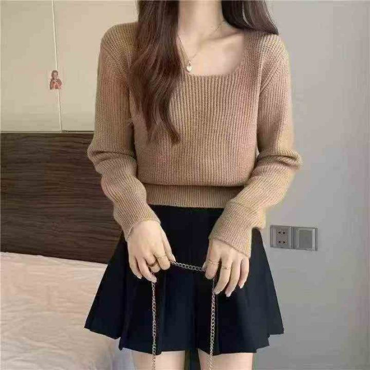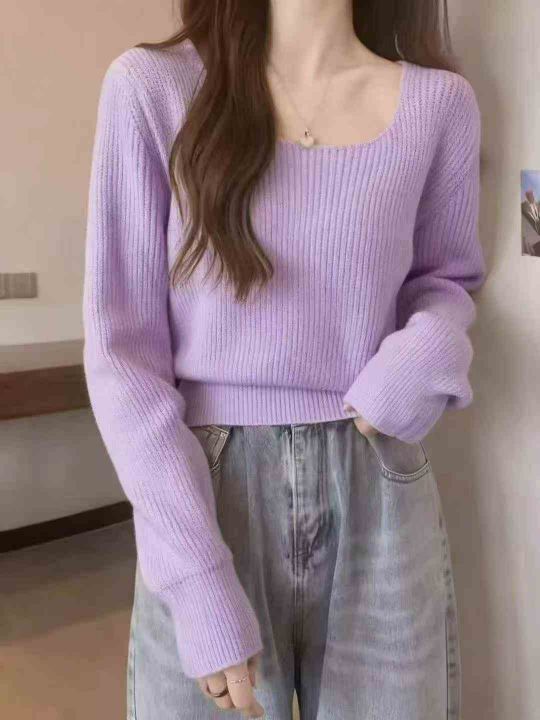 秋季新品方领高腰净版简约基础百搭套头毛衣, 独立包...