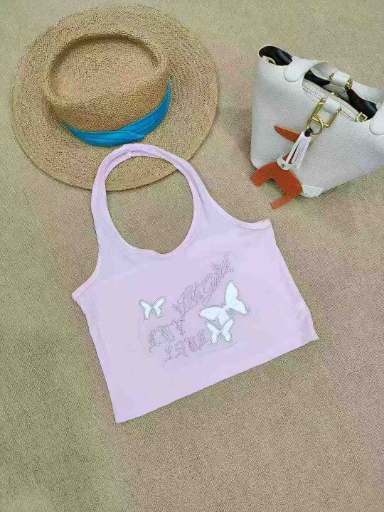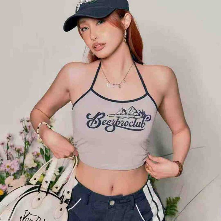 [月亮]:美式复古潮流辣妹挂脖绑带吊带背心