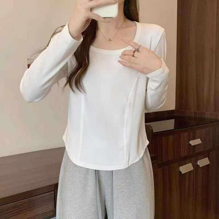【945 款】大码显瘦长袖T恤女2025春季新款白色内搭打...