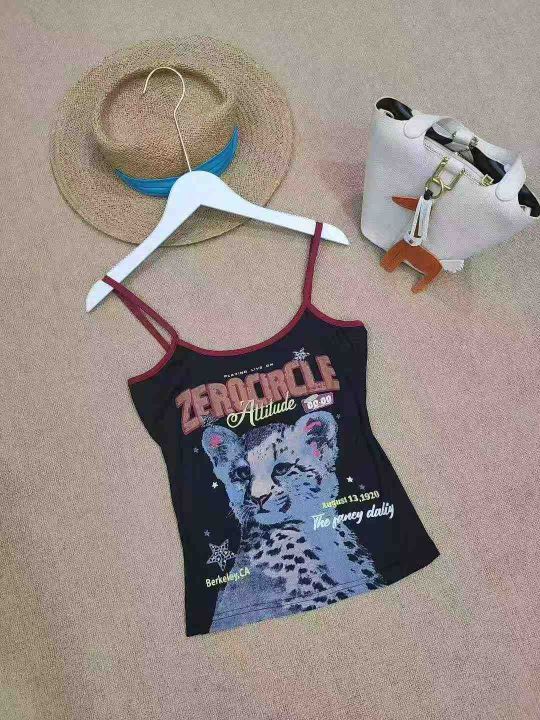 [月亮]:复古街头摇滚动物印花辣妹吊带背心
