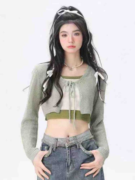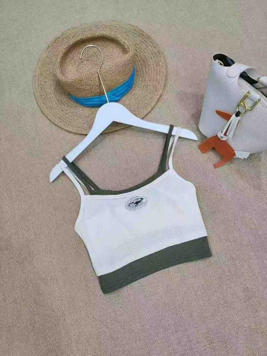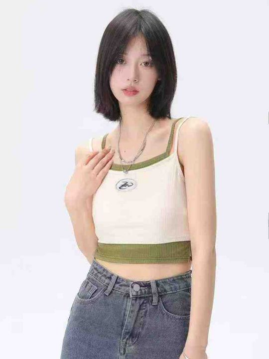 [月亮]:日系复古撞色假两件辣妹吊带上衣