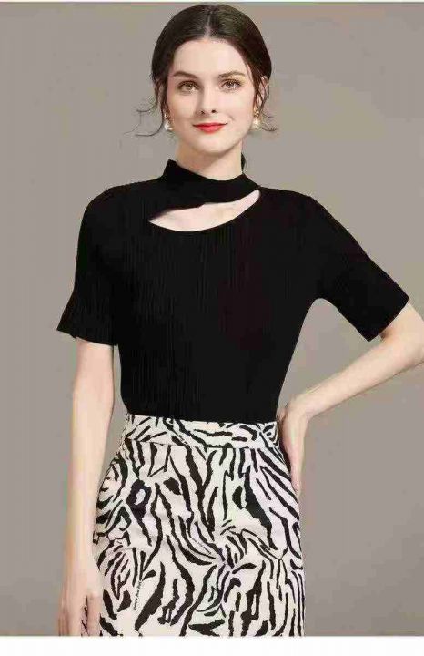 夏季新款时尚心机挂肩挖空露锁骨短袖针织小衫,独立包...