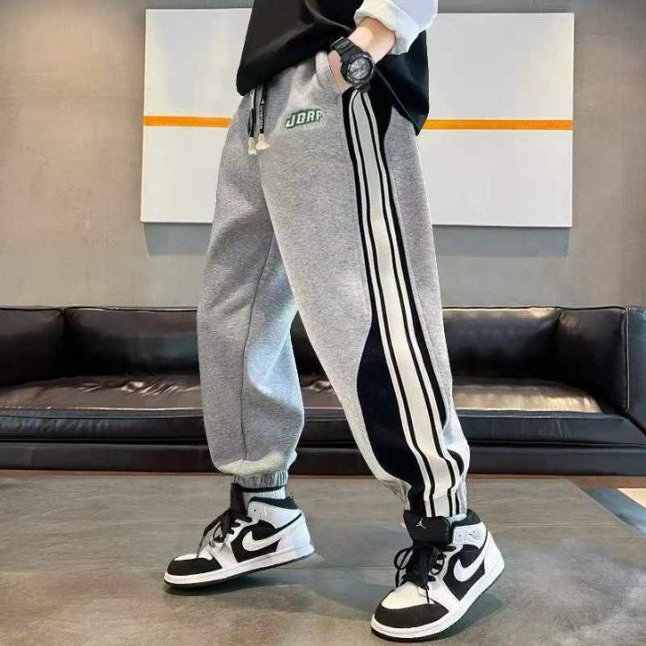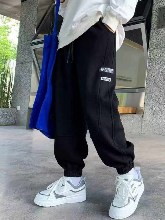 春秋季新款中大童加绒松紧腰束脚休闲棉卫裤,独立包装...