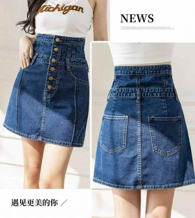 夏季新款洗水棉网红多扣牛仔半身裙,独立包装带吊牌,...