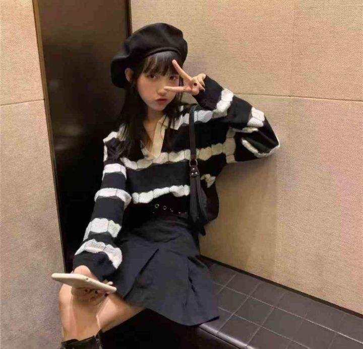 韩版软糯V领爱心扣别致设计条纹针织毛衣,[爱心]210件左右,均码,穿70-120斤,万佳档口货,原包装️无瑕疵,[666]实体店品质,分货加一