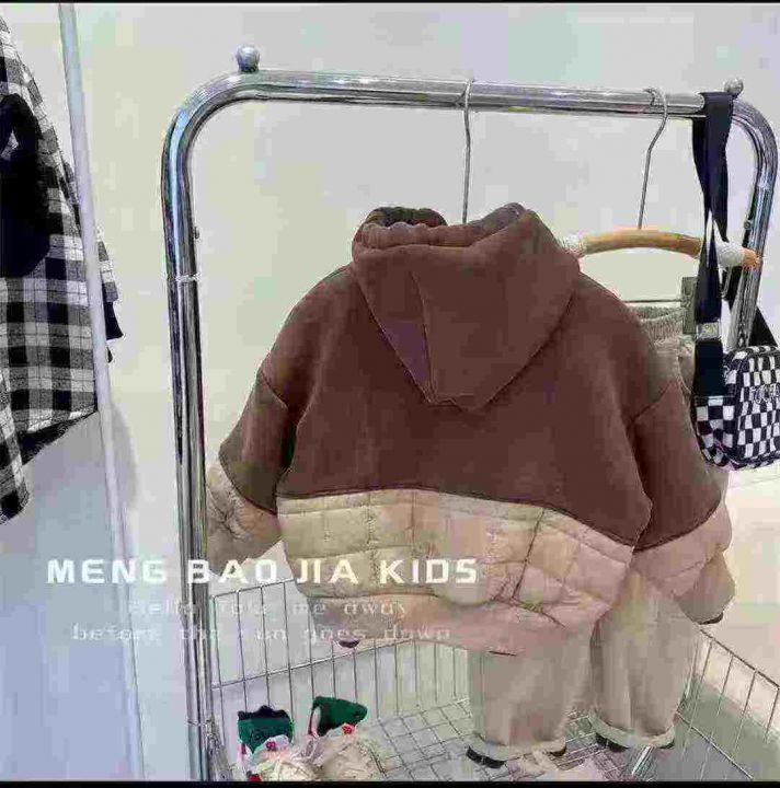 冬季新款 儿童绗棉拼接一体绒连帽卫衣帽衫男童女童韩...
